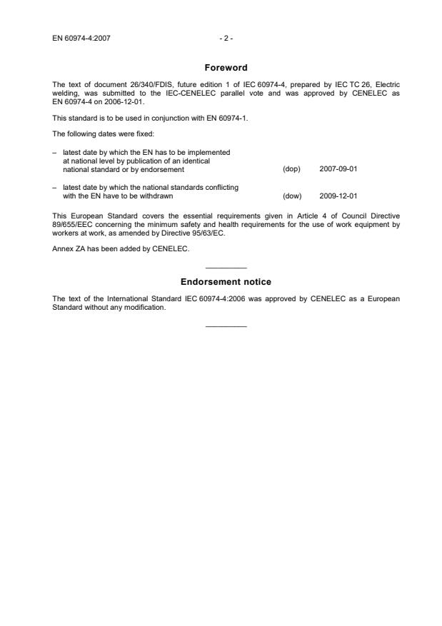 International Standard IEC 60974-4 has been prepared by IEC technical committee 26: