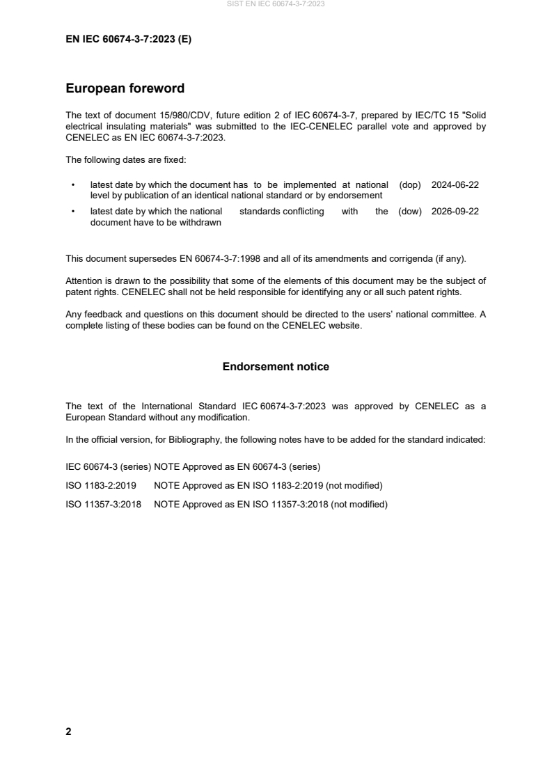 EN 60674-2:2017 - Specification for plastic films for electrical purposes - Part 2: Methods of test - Effective Date