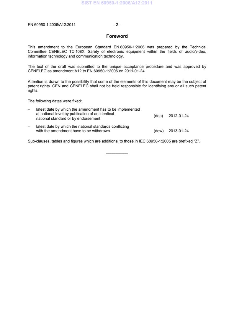 Sub-clauses, tables and figures which are additional to those in IEC 60950-1:2005 are prefixed “Z”.