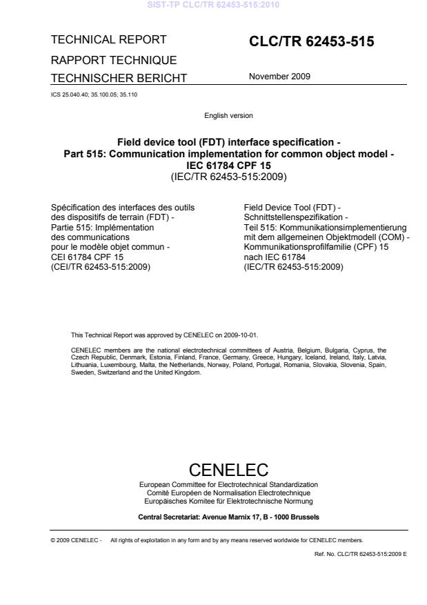 Ref. No. CLC/TR 62453-515:2009 E