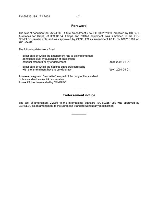 EN 60925:1991/A2:2001