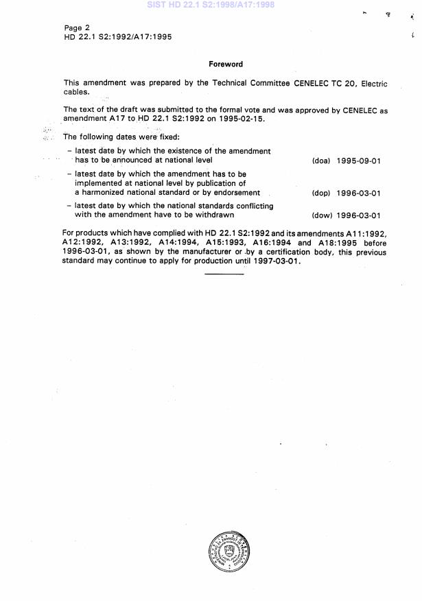 HD 22.1 S2:1992/A17:1995 has the following relationships with other standards: It is inter standard links to HD 22.1 S3:1997. Understanding these relationships helps ensure you are using the most current and applicable version of the standard.