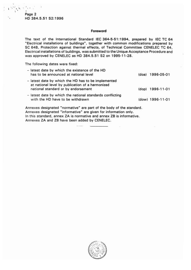 HD 384.5.51 S2:1996 has the following relationships with other standards: It is inter standard links to HD 60364-5-51:2006, EN 60447:1993, HD 384.5.54 S1:1988, ENV 61024-1:1995, EN 61082-1:1993, HD 384.4.41 S2:1996, EN 61558-1:1997. Understanding these relationships helps ensure you are using the most current and applicable version of the standard.