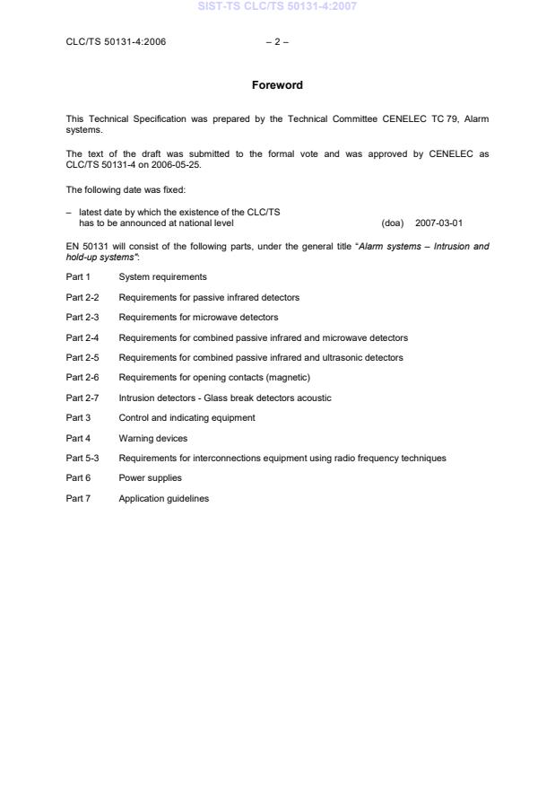 Ta slovenski standard je istoveten z: CLC/TS 50131-4:2006