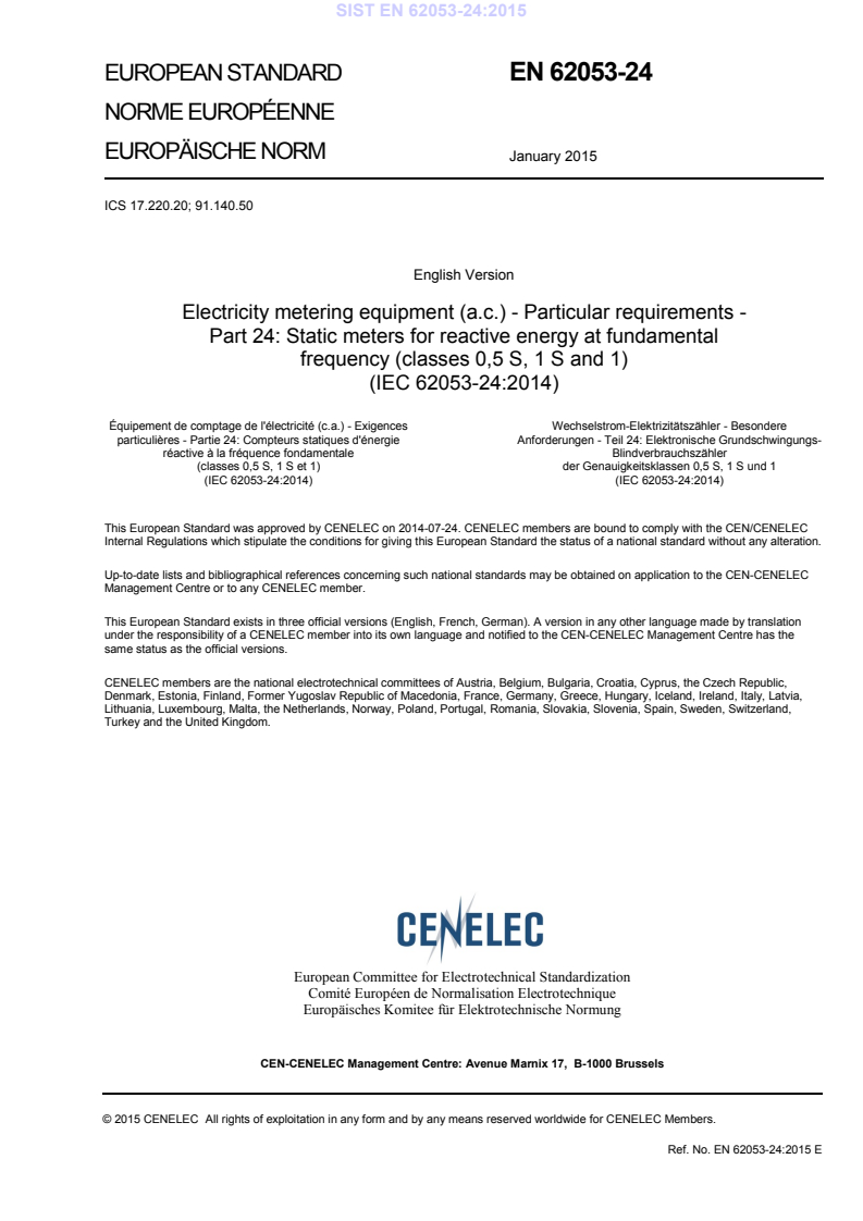 Ref. No. EN 62053-24:2015 E SIST EN 62053-24:2015