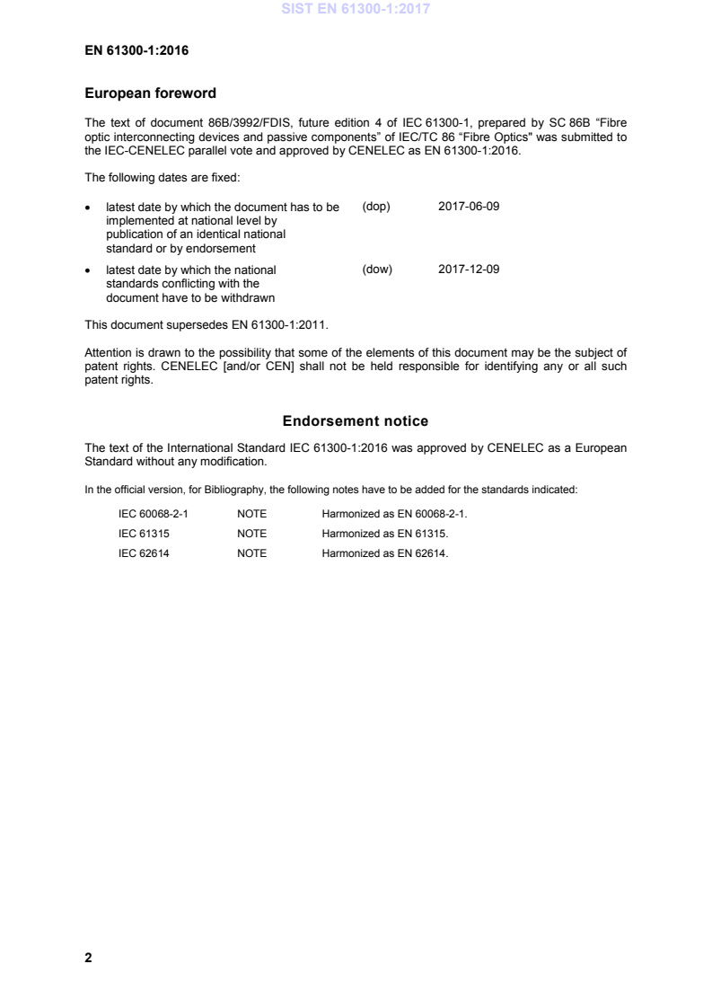 the IEC-CENELEC parallel vote and approved by CENELEC as EN 61300-1:2016.