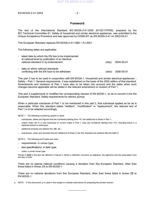 This European Standard replaces EN 60335-2-41:1996 + A1:2001.
