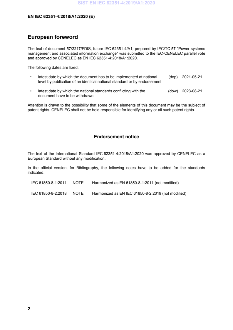 - IEC 61850-8-1 and IEC 61850-8-2 (noted as harmonized in the amendment)