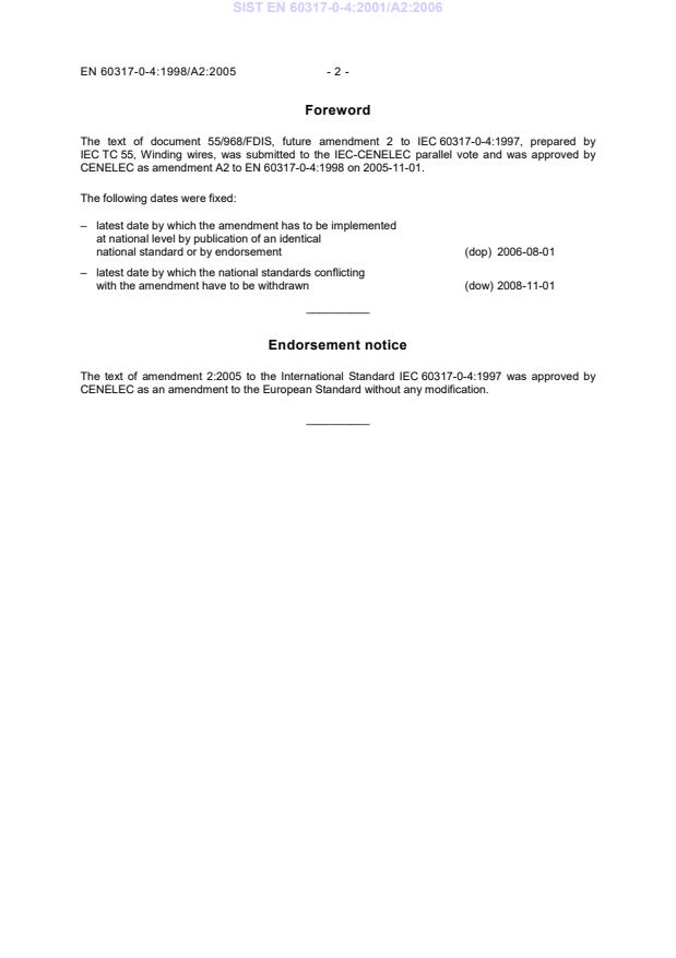 Ta slovenski standard je istoveten z: EN 60317-0-4:1998/A2:2005