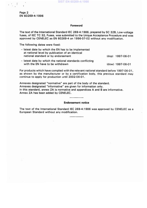 Ta slovenski standard je istoveten z: EN 60269-4:1996