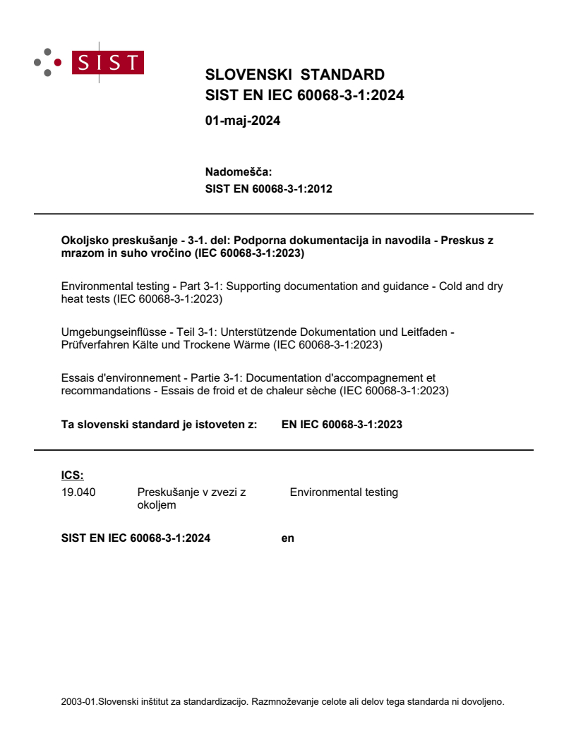 Ta slovenski standard je istoveten z: EN IEC 60068-3-1:2023