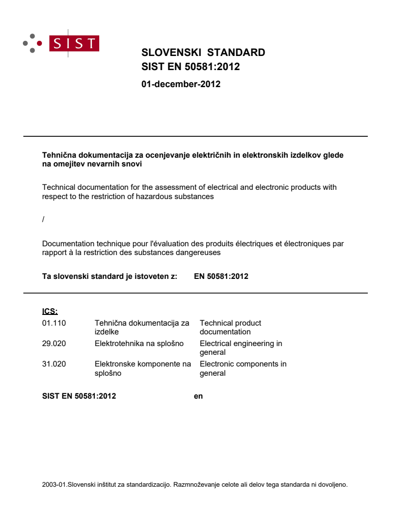 Ta slovenski standard je istoveten z: EN 50581:2012