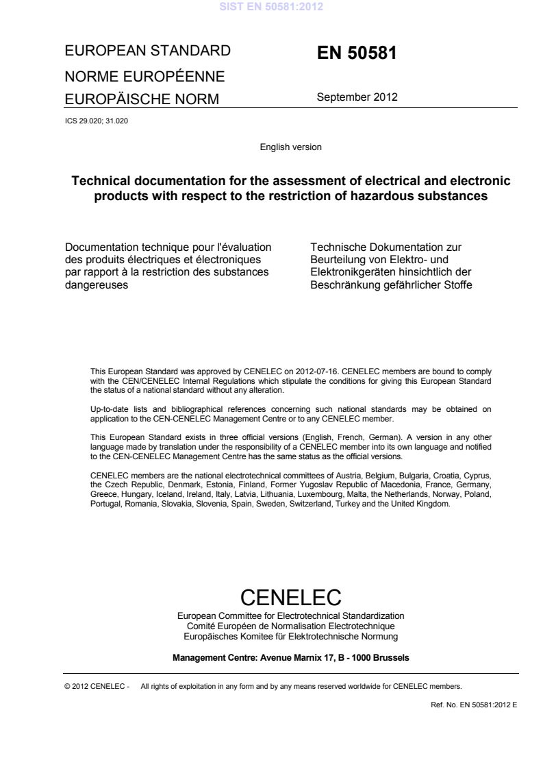 Ref. No. EN 50581:2012 E