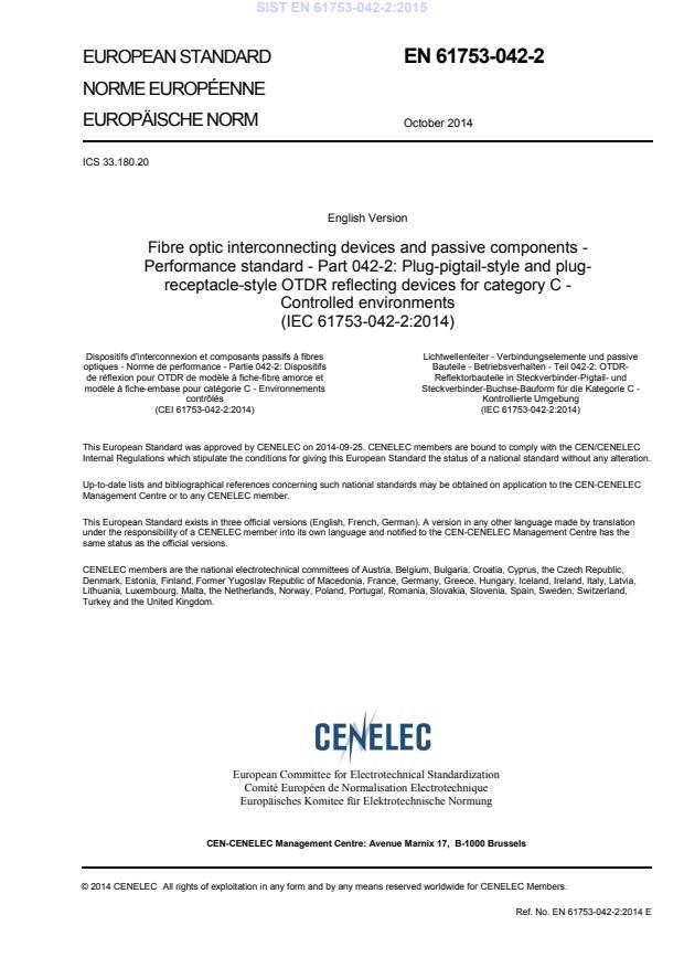 - EN 61753-042-2:2014 / CLC adoption (European endorsement of IEC 61753-042-2:2014)