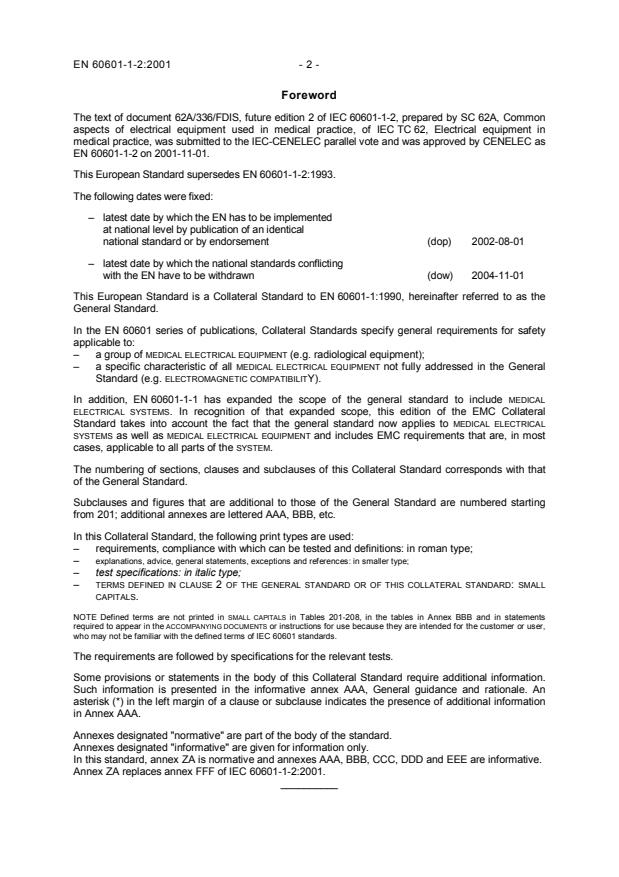 Ta slovenski standard je istoveten z: EN 60601-1-2:2001