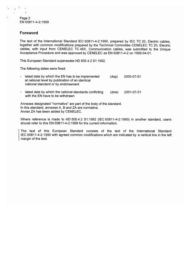 EN 60811-4-2:1999 has the following relationships with other standards: It is inter standard links to HD 505.4.2 S1:1992, EN 60811-4-2:2004. Understanding these relationships helps ensure you are using the most current and applicable version of the standard.