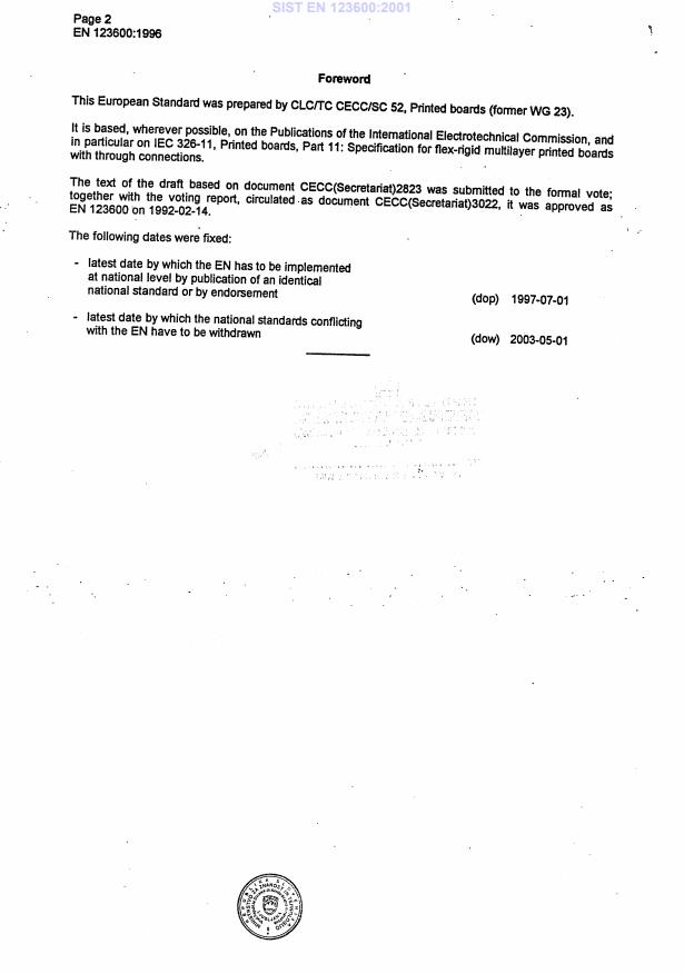EN 123600:1996 is a standard published by CLC. Its full title is "Sectional Specification: Flex-rigid multilayer printed boards with through connections". This standard covers: D97/081: CECC/SC 52 disbanded
