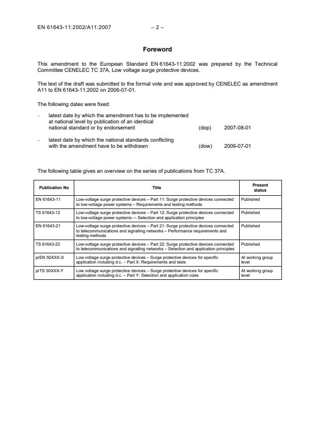 This amendment to the European Standard EN 61643-11:2002 was prepared by the Technical