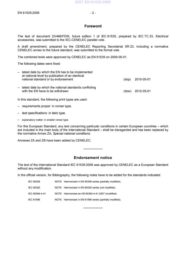 The combined texts were approved by CENELEC as EN 61535 on 2009-05-01.