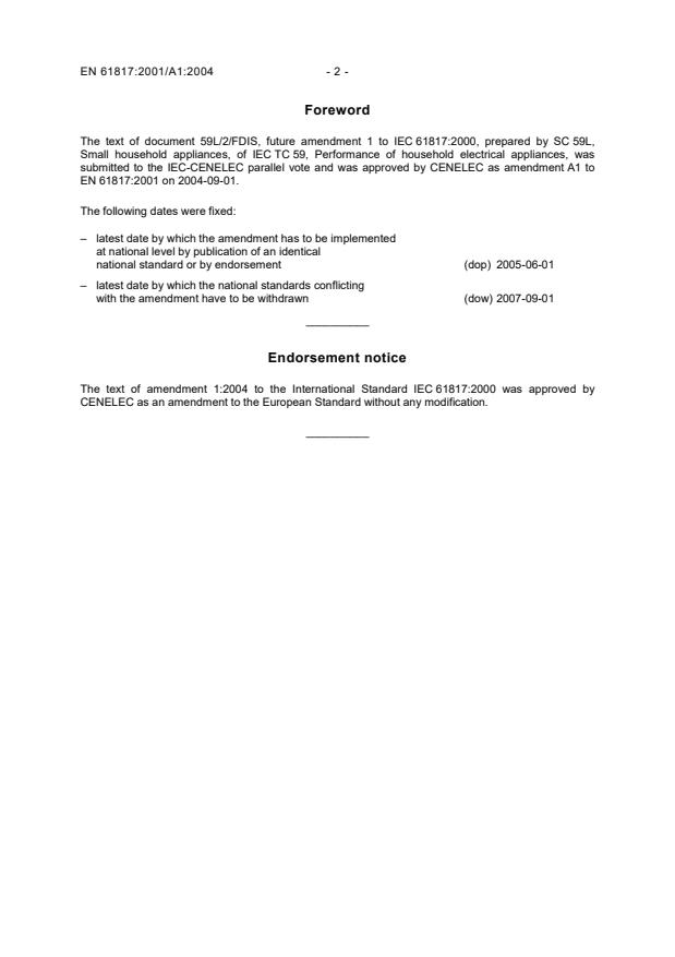 EN 61817:2001/A1:2004 is classified under the following ICS (International Classification for Standards) categories: 97.040.50 - Small kitchen appliances. The ICS classification helps identify the subject area and facilitates finding related standards.