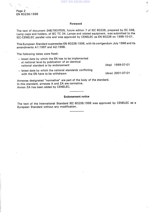 EN 60238:2004 - Edison screw lampholders - Effective Date