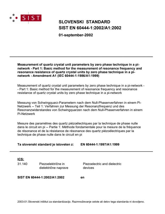 Ta slovenski standard je istoveten z: EN 60444-1:1997/A1:1999