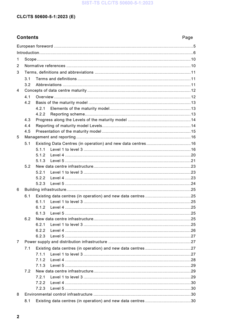 Keywords: CLC/TS 50600-5-1:2023, data centre maturity model, energy management, environmental sustainability, EN 50600, data center best practices, KPIs, cooling technologies, LCA.