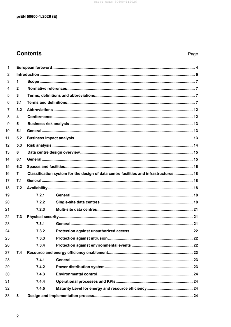 prEN 50600-1:2026 covers essential topics related to the holistic design and operation of data centre facilities: