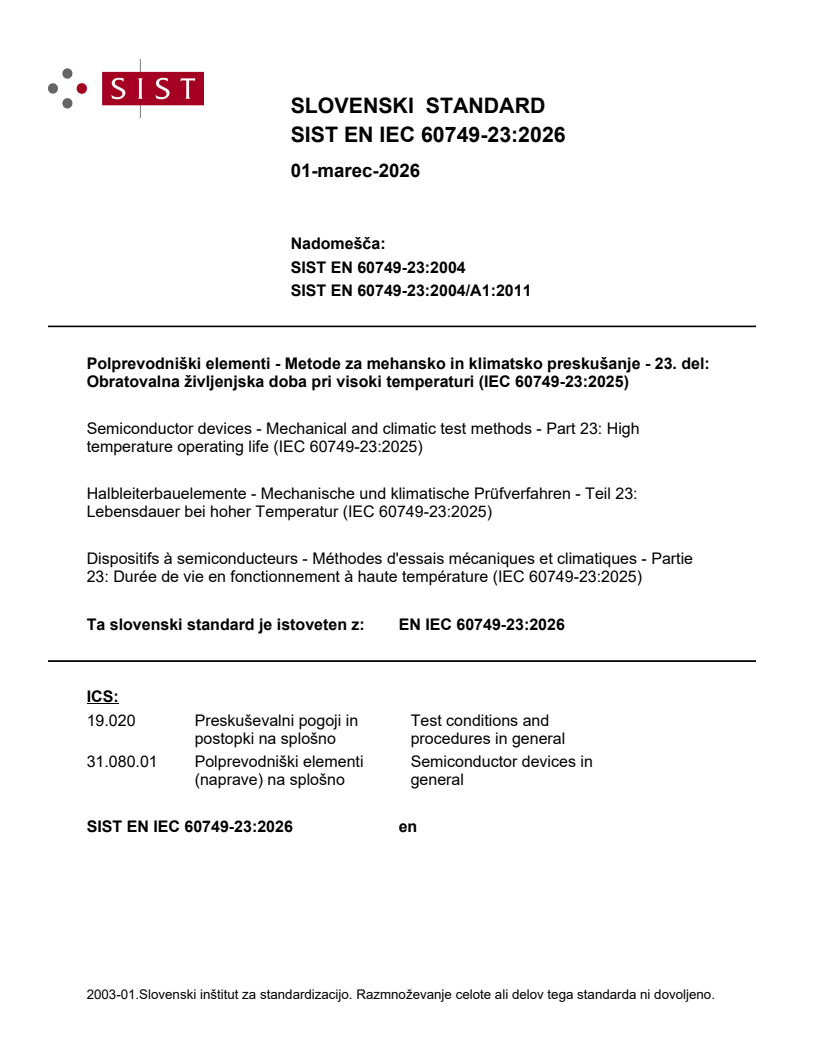 Ta slovenski standard je istoveten z: EN IEC 60749-23:2026