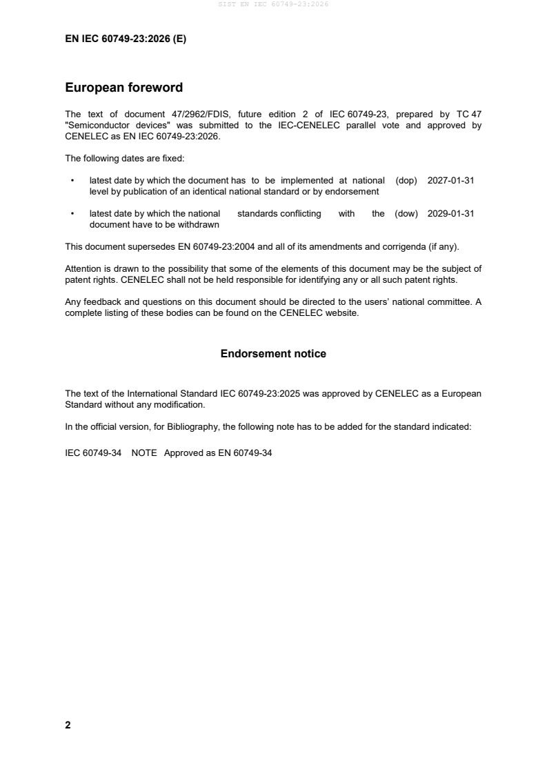 The text of the International Standard IEC 60749-23:2025 was approved by CENELEC as a European