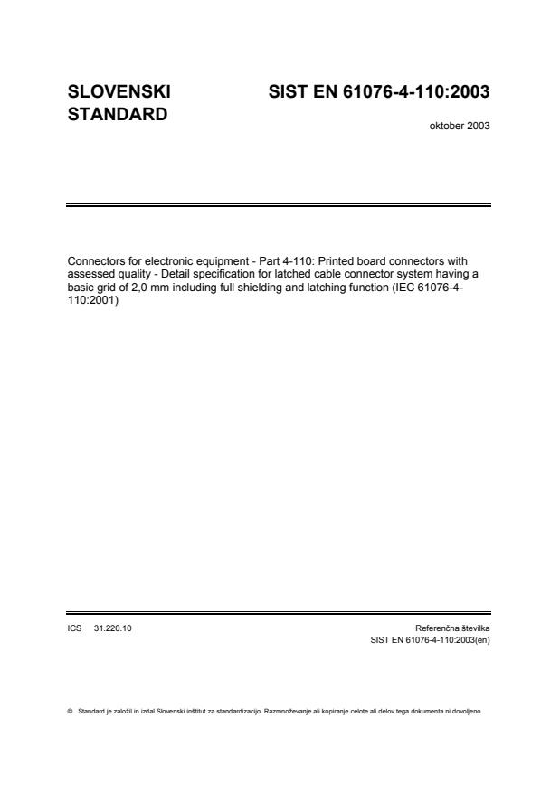 Standard je založil in izdal Slovenski inštitut za standardizacijo. Razmnoževanje ali kopiranje celote ali delov tega dokumenta ni dovoljenoReferenčna številkaSIST EN 61076-4-110:2003(en)ICS31.220.10