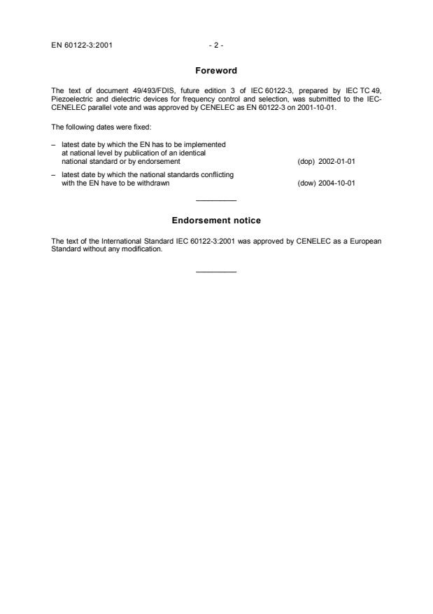 The text of the International Standard IEC 60122-3:2001 was approved by CENELEC as a European
