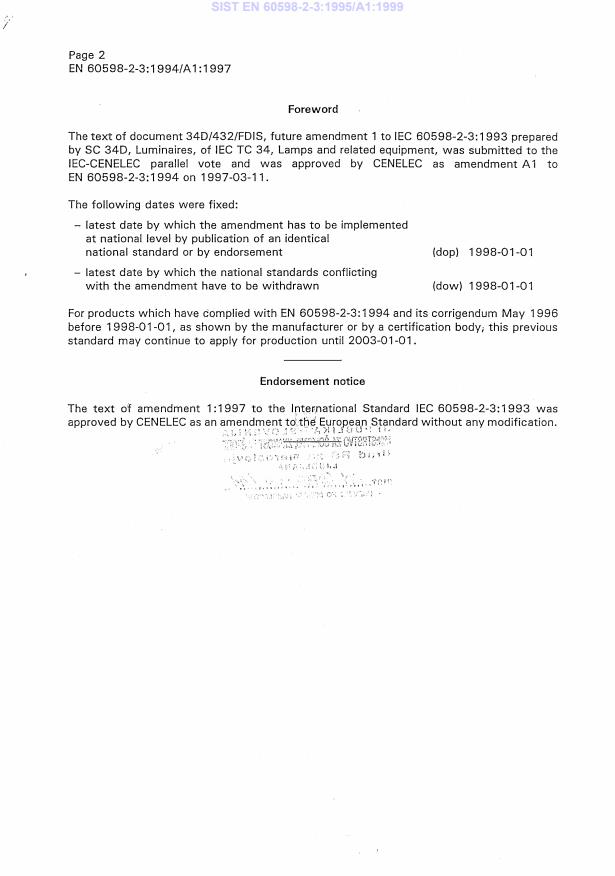 Ta slovenski standard je istoveten z: EN 60598-2-3:1994/A1:1997