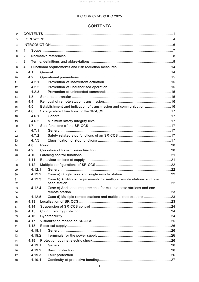 This standard outlines essential safety and performance requirements for the design, function, verification, and use of cableless control systems in industrial machinery environments. It aims to ensure that such systems operate reliably and safely, minimizing risks related to unintended commands, unauthorized operation, or electromagnetic interference.