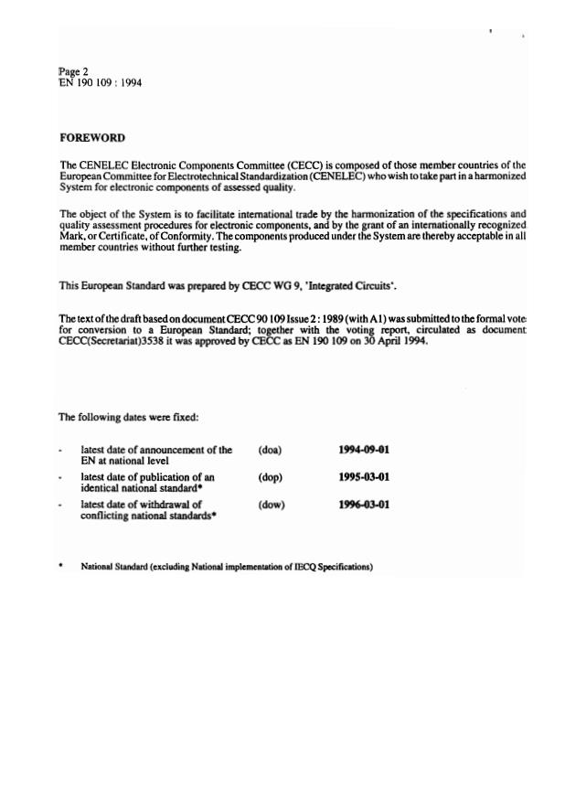 Supersedes CECC 90 109:1989 (with A1) * CECC WG 9 work handled by SR 47A