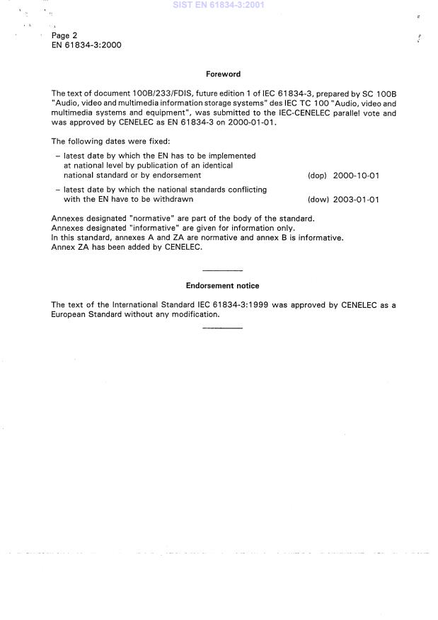 - IEC 61834-3:1999 (original international text adopted by CLC)