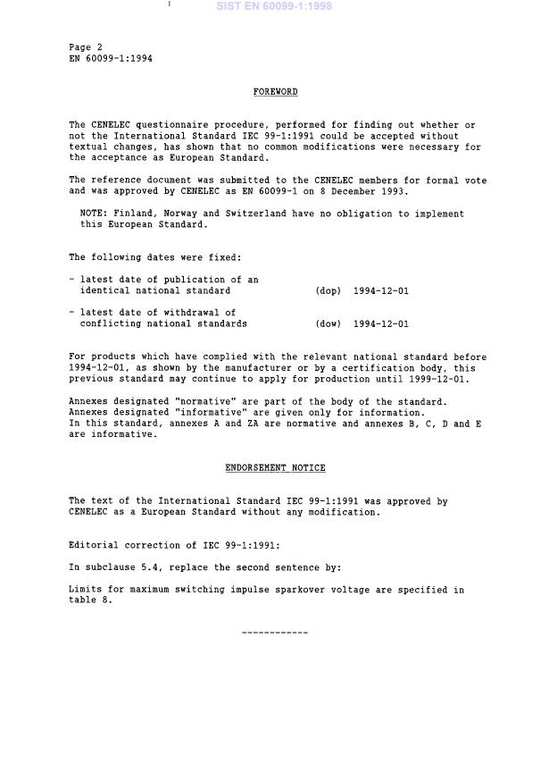 Ta slovenski standard je istoveten z: EN 60099-1:1994