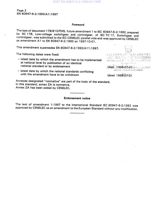 Ta slovenski standard je istoveten z: EN 60947-6-2:1993/A1:1997