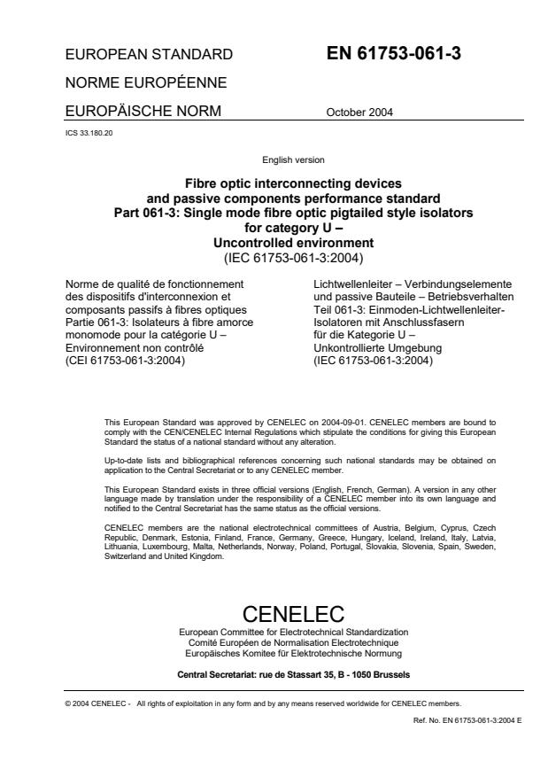 the IEC-CENELEC parallel vote and was approved by CENELEC as EN 61753-061-3 on 2004-09-01.