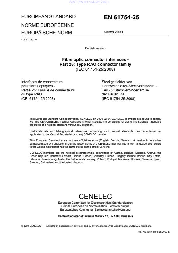 IEC-CENELEC parallel vote and was approved by CENELEC as EN 61754-25 on 2009-02-01.