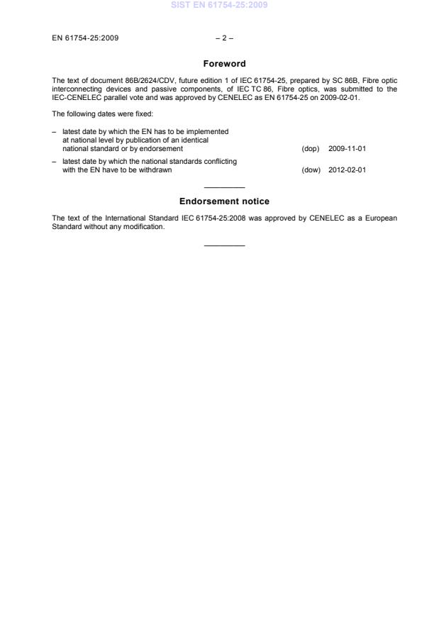 The text of the International Standard IEC 61754-25:2008 was approved by CENELEC as a European