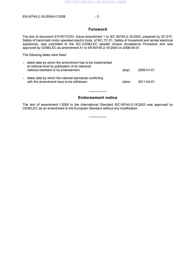 approved by CENELEC as amendment A1 to EN 60745-2-18:2004 on 2008-04-01.
