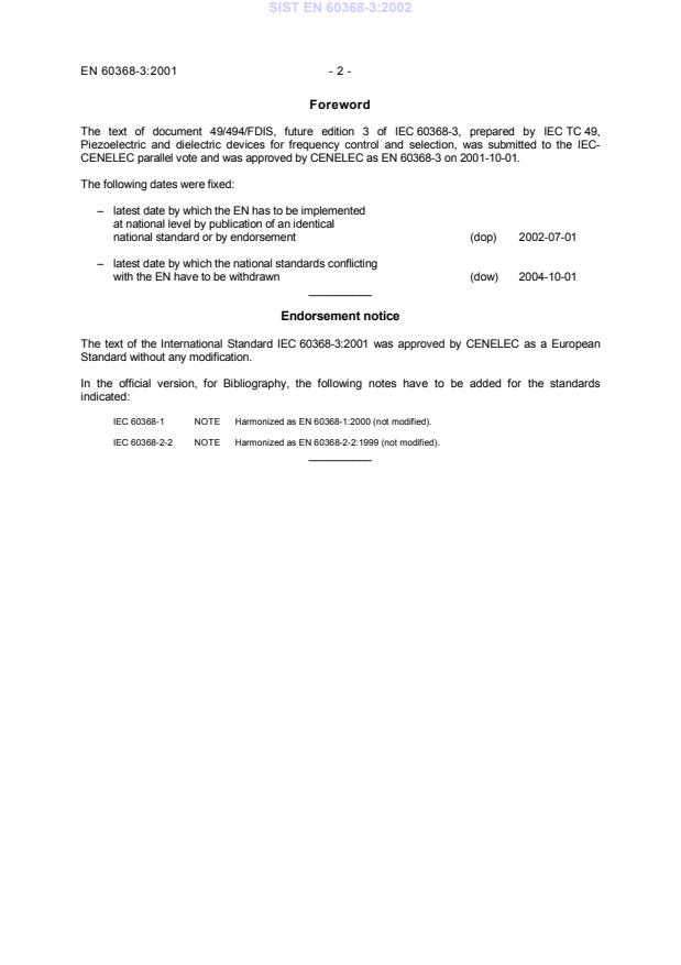 CENELEC parallel vote and was approved by CENELEC as EN 60368-3 on 2001-10-01.