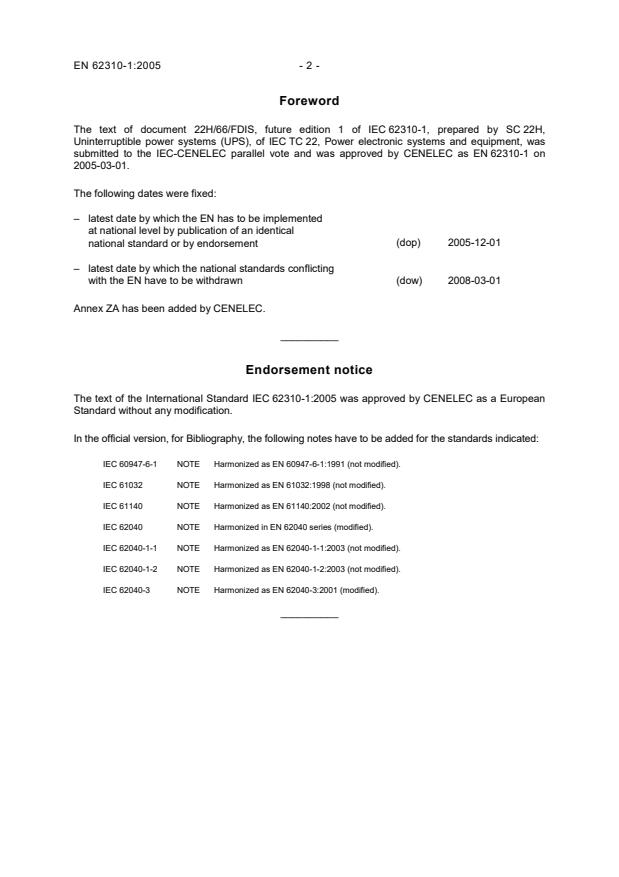 Ref. No. EN 62310-1:2005 E