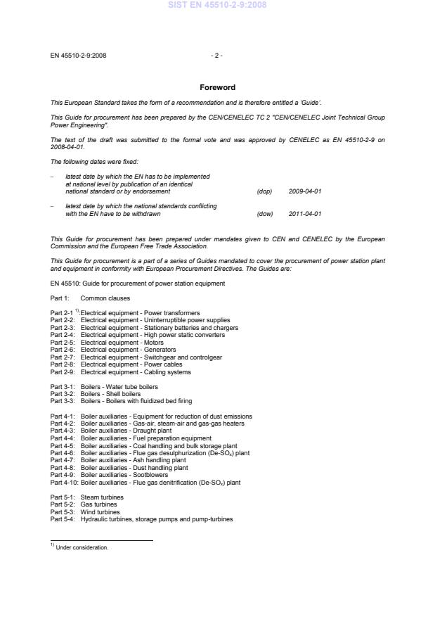 Keywords: EN 45510-2-9:2008, procurement guide, cabling systems, power station equipment, power cables, control and instrumentation cable, earthing, performance specification, CENELEC.