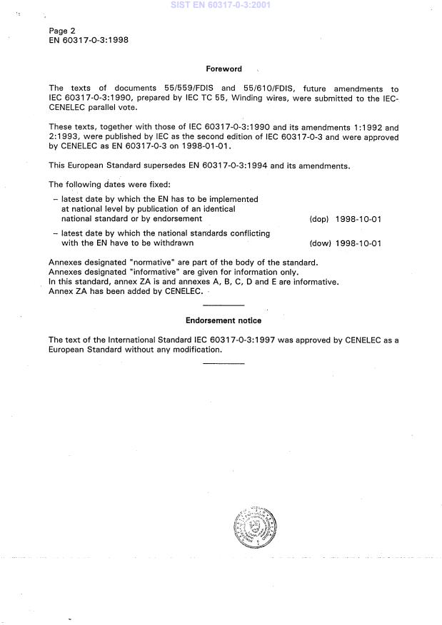 Ta slovenski standard je istoveten z: EN 60317-0-3:1998