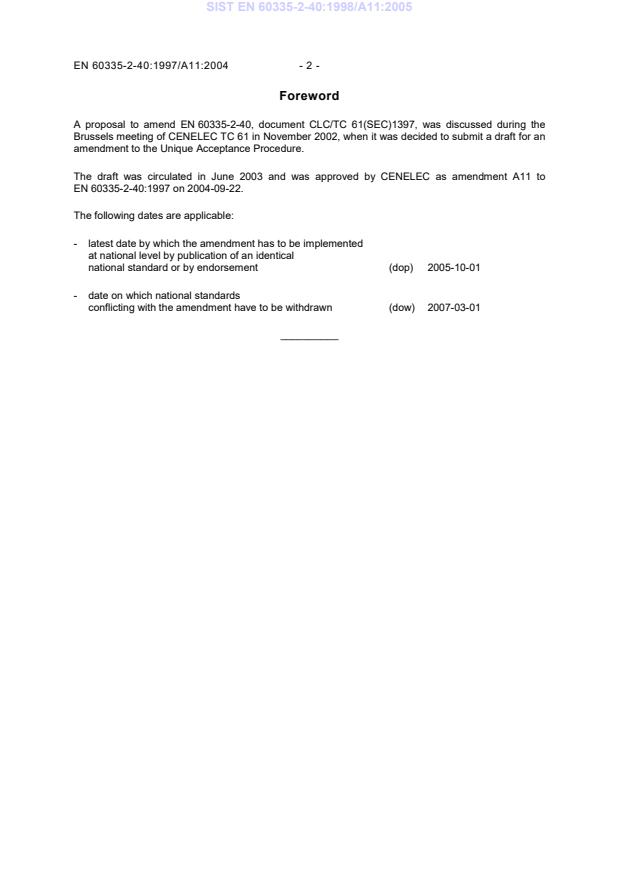 This amendment A11 modifies the European Standard EN 60335-2-40:1997; it was approved by
