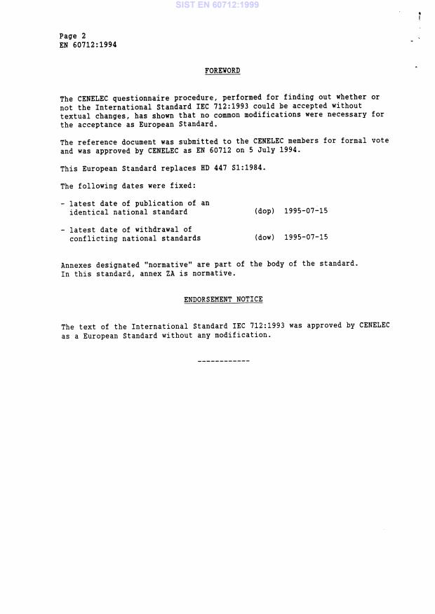 Ta slovenski standard je istoveten z: EN 60712:1994