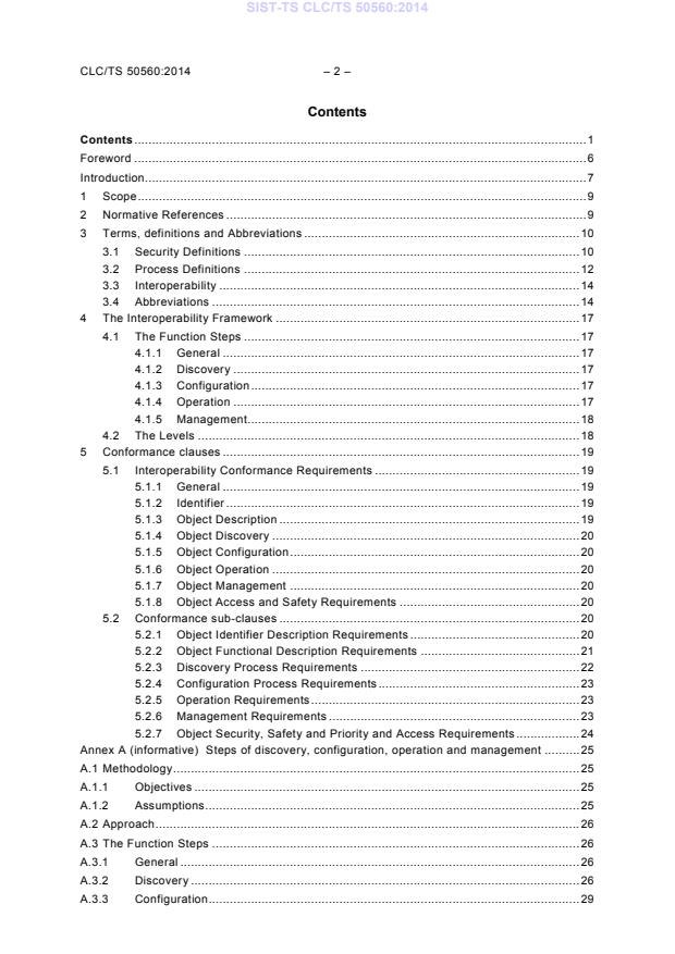 Ta tehnična specifikacija zajema specifikacijo okvirnih zahtev za interoperabilnost, ki določa sedem ravni interoperabilnosti na podlagi štirih skupin korakov za interoperabilnost, ki jih opredeljuje pet vrst medsebojnih vplivov, in metodologijo, ki temelji na točkah skladnosti za izpolnjevanje zahtev, povezanih z navedeno ravnjo interoperabilnosti naprav, vgrajenih v stanovanjski in stavbni elektronski sistem (HBES, HES).
