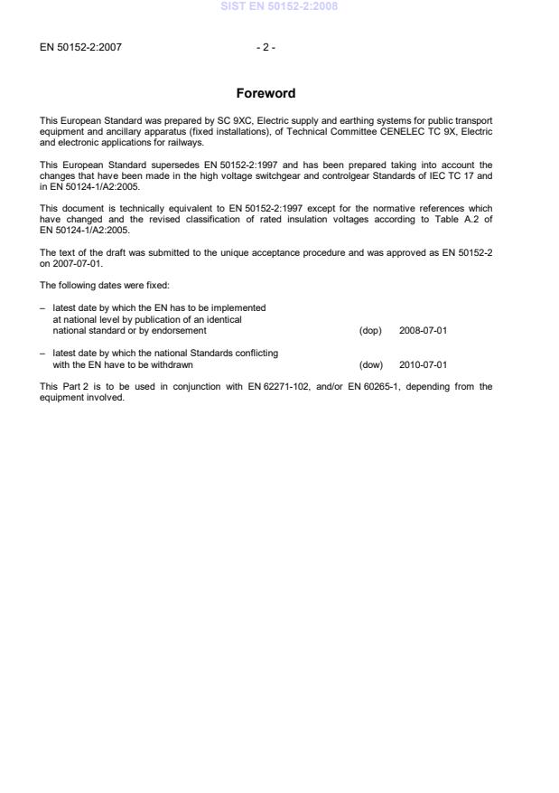 Ta slovenski standard je istoveten z: EN 50152-2:2007